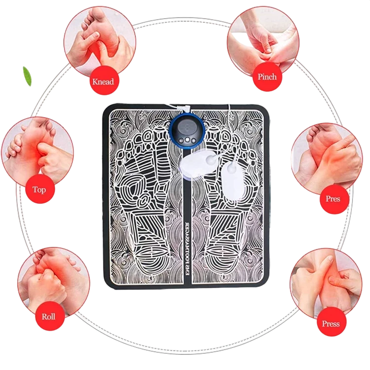 يعمل الجهاز على تحسين و تنشيط دورة الدم عن طريق تقليص العضلات حيث مريح جدا لكبار السن ويعمل على تقليل التورم و زيادة المرونة ومناسب لمن يعانون من انتفاخات في القدم والدوالي ويحسن من نومك وعالج ألم القدم وانت في بيتك مع مساج القدم حيث يحتوي على 10 مستويات مختلفة من التدليك لاختيار المناسبة
